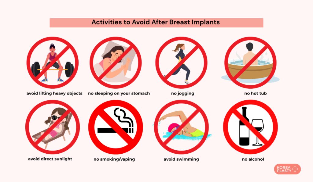 - Overhead presses and deadlifts should be avoided after breast augmentation;