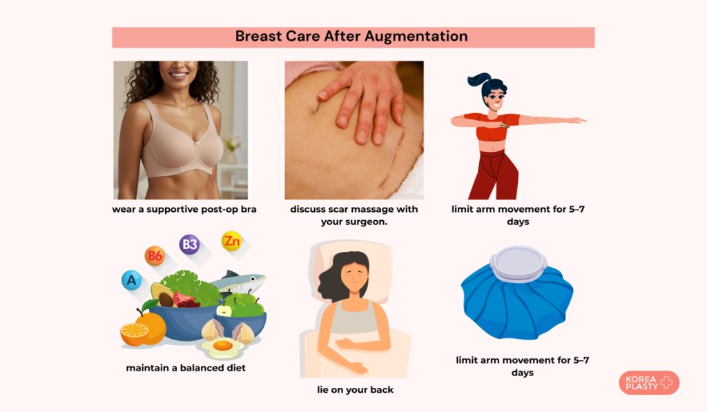 - Perform breast massage to heal incision wound faster;