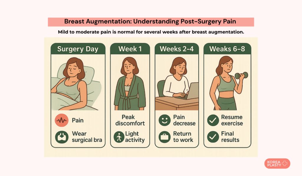 - Boost intensity and strength training recommended between four and six weeks after breast augmentation;