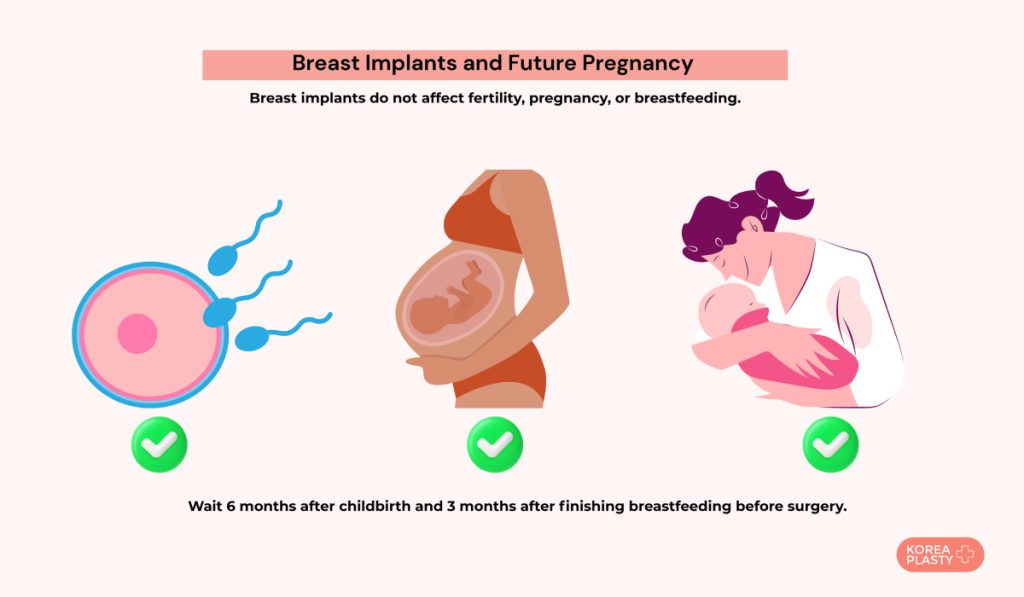 Planning is important. Surgeons generally advise delaying augmentation until you are done having children, because future pregnancies alter breast size and shape and lead to the need for revision surgery with 80% chance. If you have already given birth, it is recommended to wait six months after childbirth and three months after you finish breastfeeding before scheduling surgery, so tissues return to their baseline state.