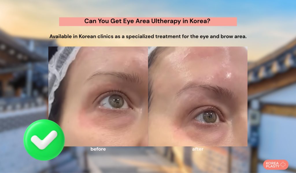 Ultherapy for the eye is available in Korea. Clinics position the micro-focused ultrasound to lift skin on the eyebrow and minimize excess eyelid skin. The same pass opens the lid fold so the eye looks larger and fresher. Forena Clinic and Me Clinic representatives offer multilingual consultations that map the brow-to-lid vector, and patients leave with immediate elevation and progressive collagen renewal visible within three months.